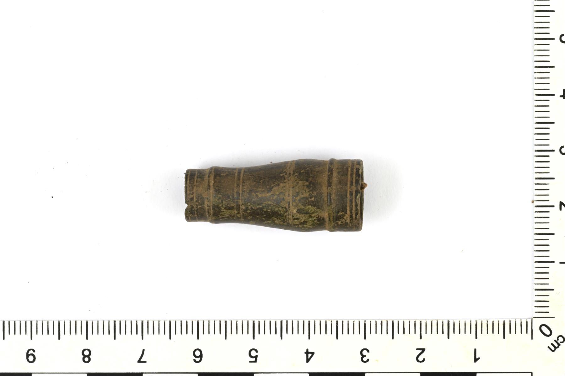 | Poikkileikkaukseltaan pyöreä neulakotelo. Sisäpuolella on säilyneenä orgaanista ainesta. | |