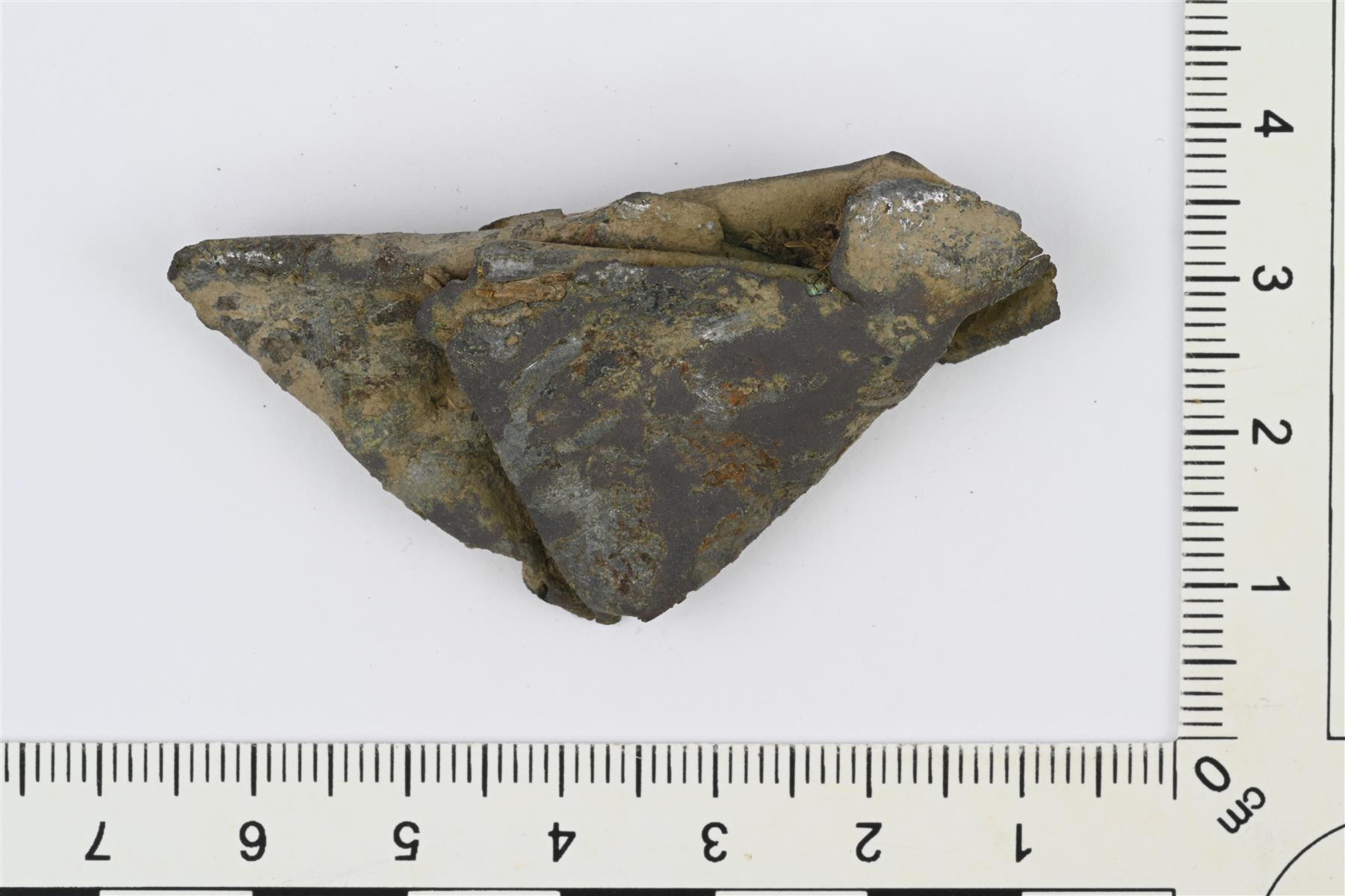 | Ohutta metallilevyä mytyksi taiteltuna. Luultavasti hopeoitua kupariseosta tai heikkolaatuista hopeaa, jossa runsaasti kuparia joukossa. | |