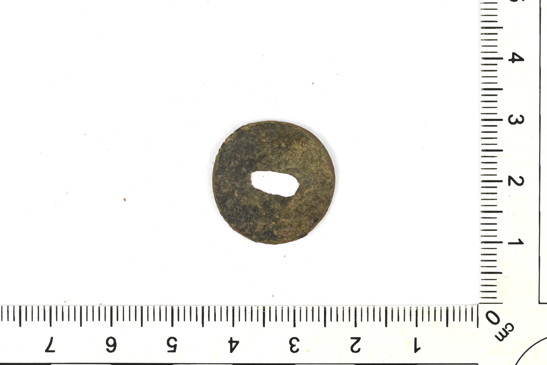 | Pyöreä kupariseoslevy. Keskellä on ovaali reikä. | |