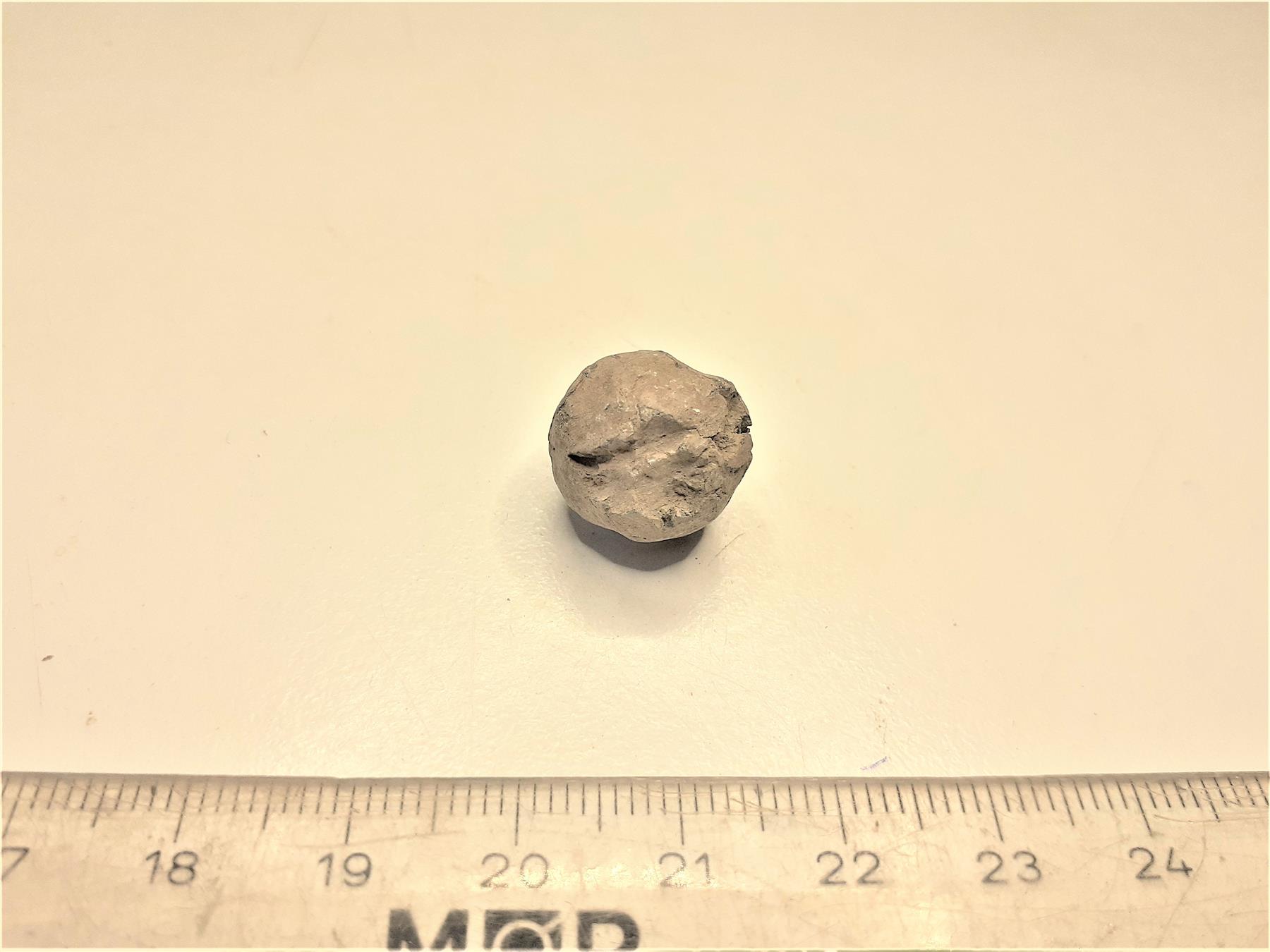 | Pinnoilta "röpelöinen" käsituliaseen lyijykuula. | |