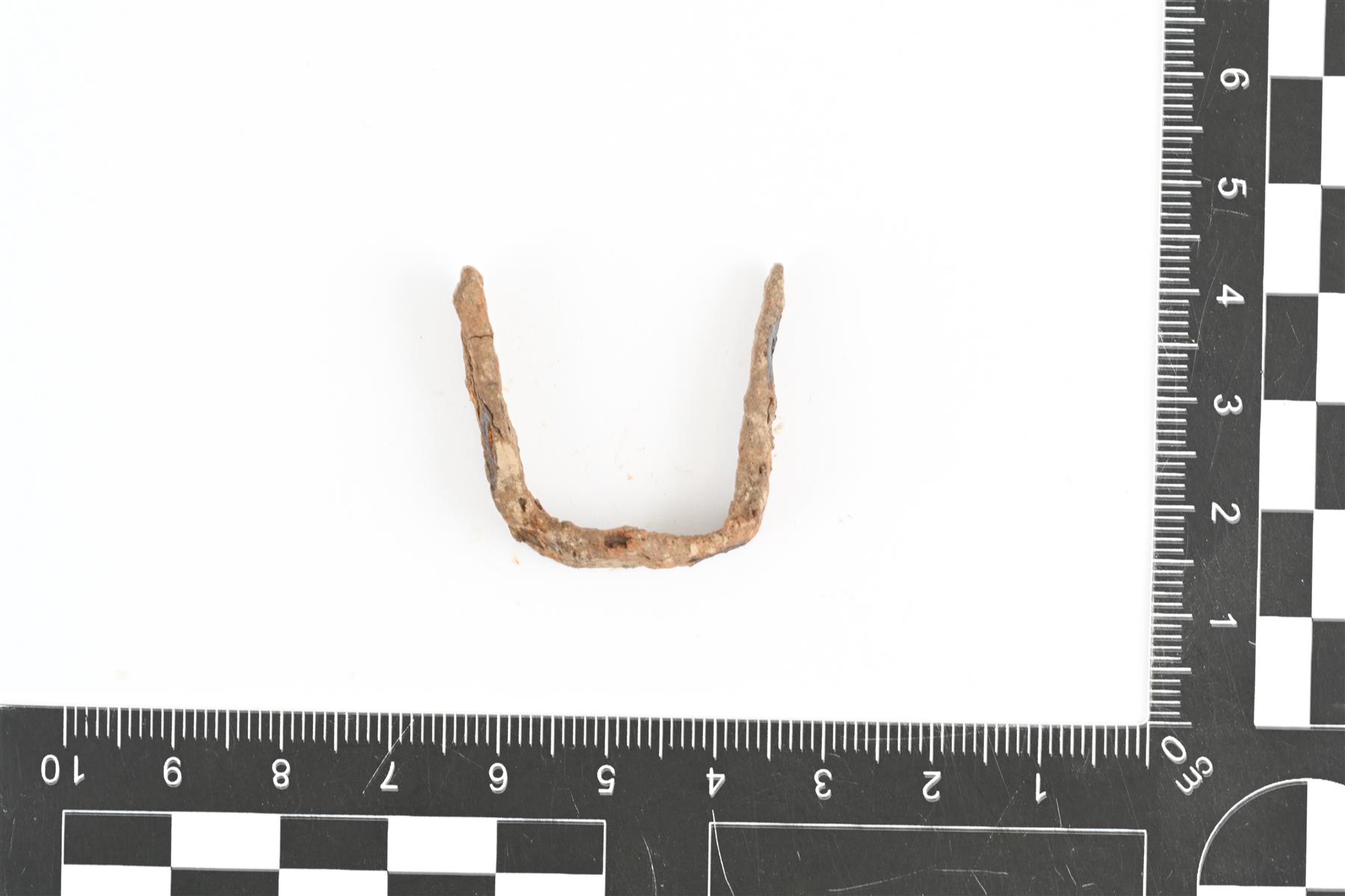 | Rautainen sinkilä. Kulmikkaan U-kirjaimen muotoon taivutettu rautavarras, jonka poikkileikkaus nelikulmainen. Vartaan pyöreänsoikeat päät ohentuvat kärkimäisesti. | |