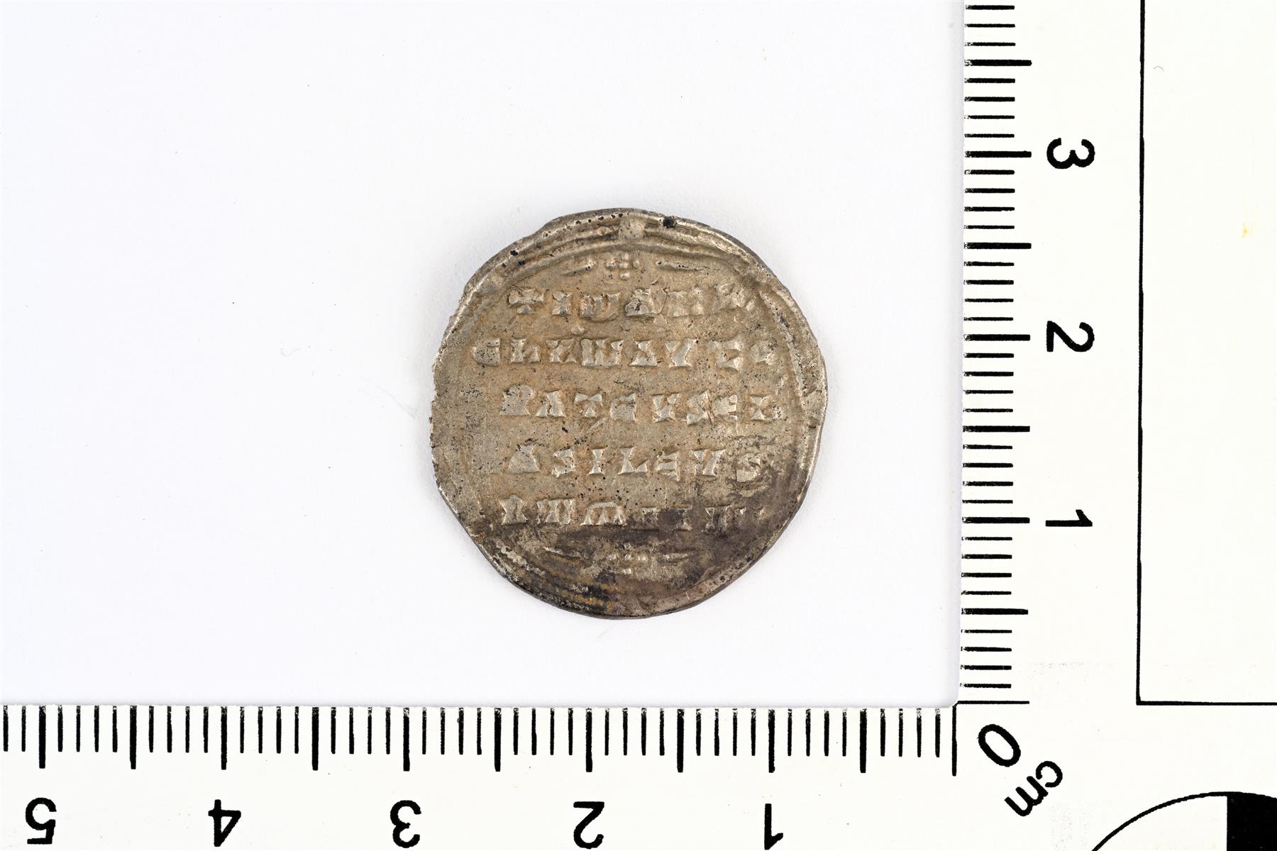 | Johannes I Tzimiskes, miliaresion, Konstantinopoli 969–976. Hieman vääntynyt ja yhdessä reunakohdassa on pientä kulumaa, mutta muuten hyväkuntoinen. | |