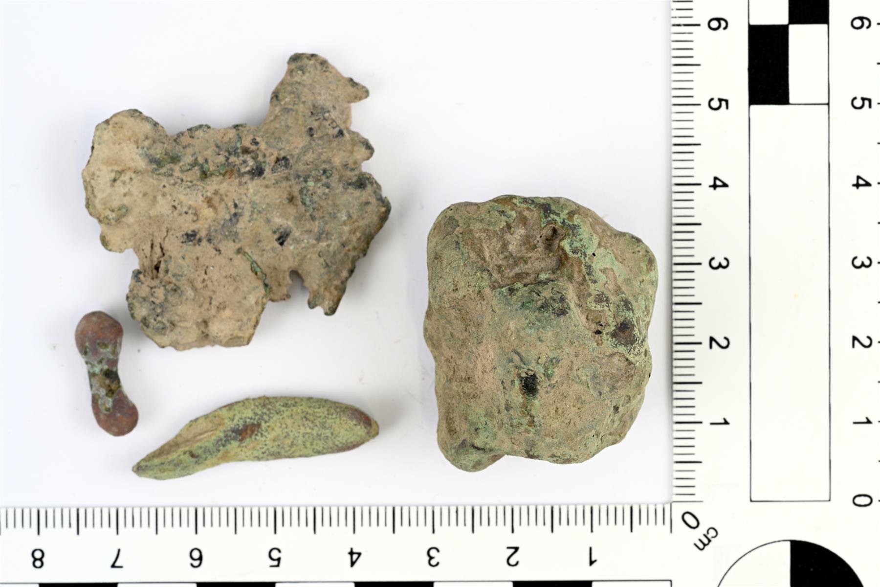 Sulaneen kupariseoksen paloja. Jussi Moisio 9.4.2024 KM44730:1_1_sulanut aines |