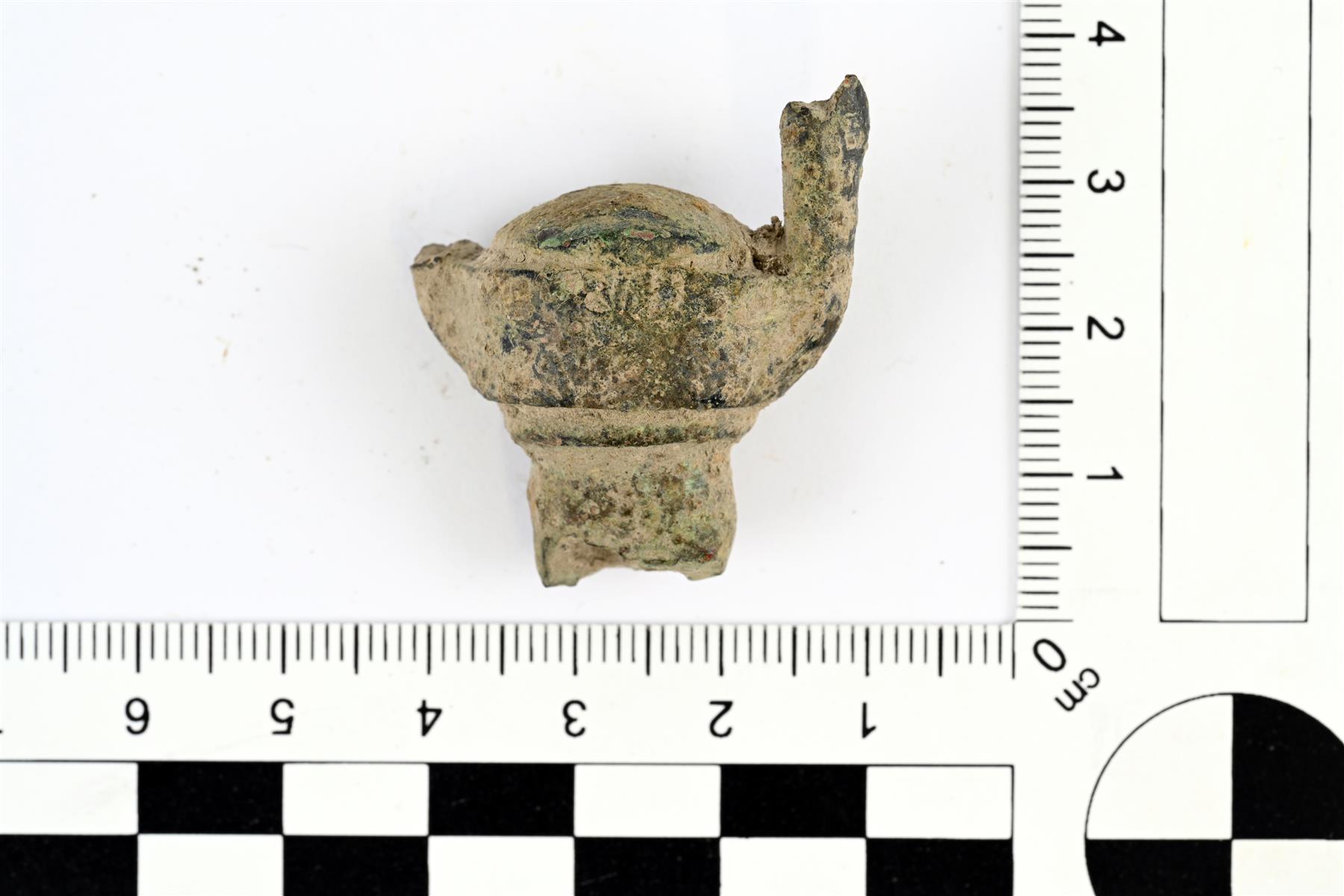 Mahdollinen astian kahvan katkelma. Yläosan korva on katkennut ja alaosa on murtunut. | |