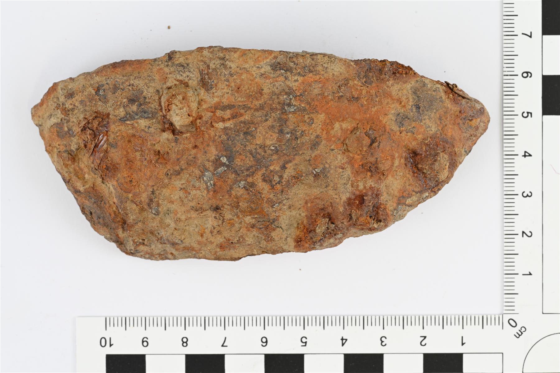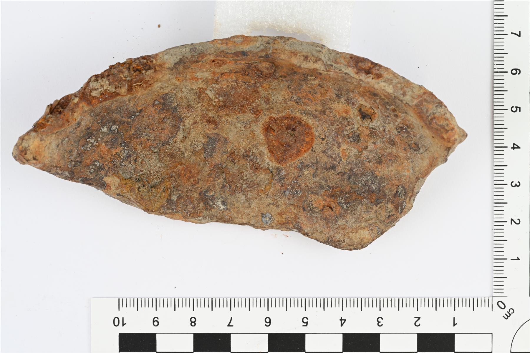 | Valurautaisen padan pala. Luultavasti kaarevapohjaisen padan kyljen ja pohjan kaarteesta. Ulkopinnalla kaksi kohovyötä. | |