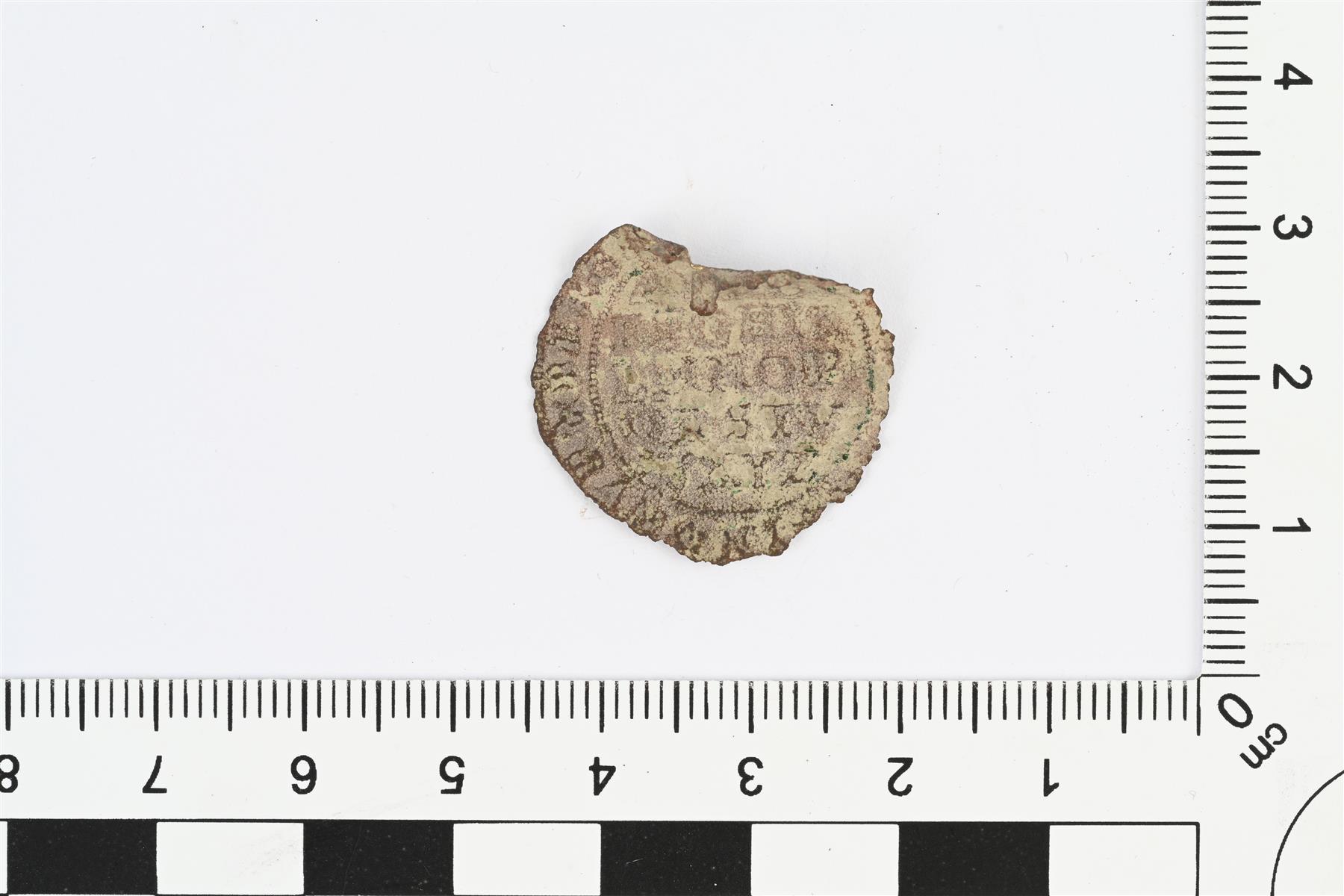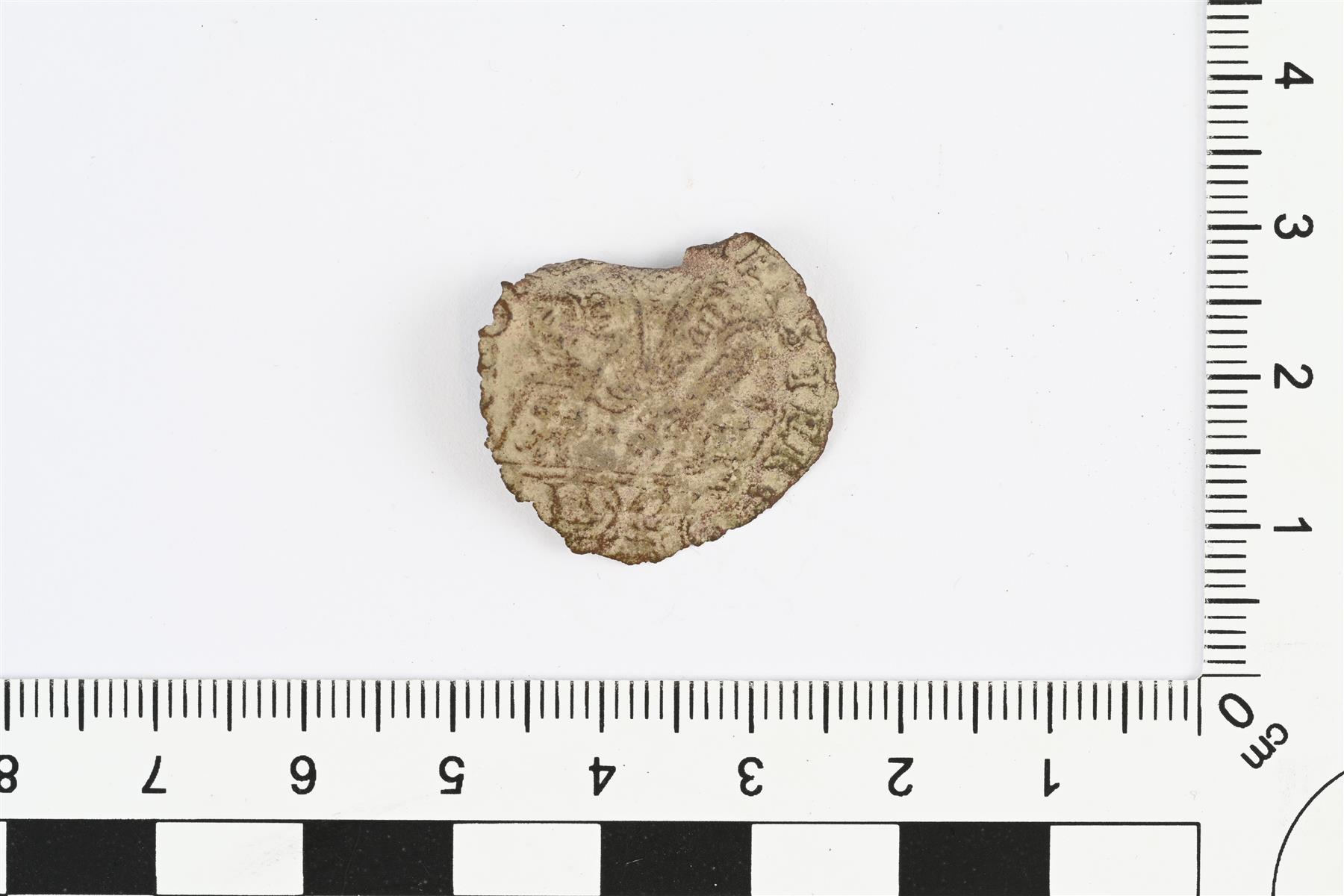 | Laskuraha, Nürnberg, tekijä Wolf Lauffer (1554–1601). Reunasta puuttuu pala. 1,21339 g. Tunnistus Frida Ehrnsten, Kansallismuseon rahakammio. | |