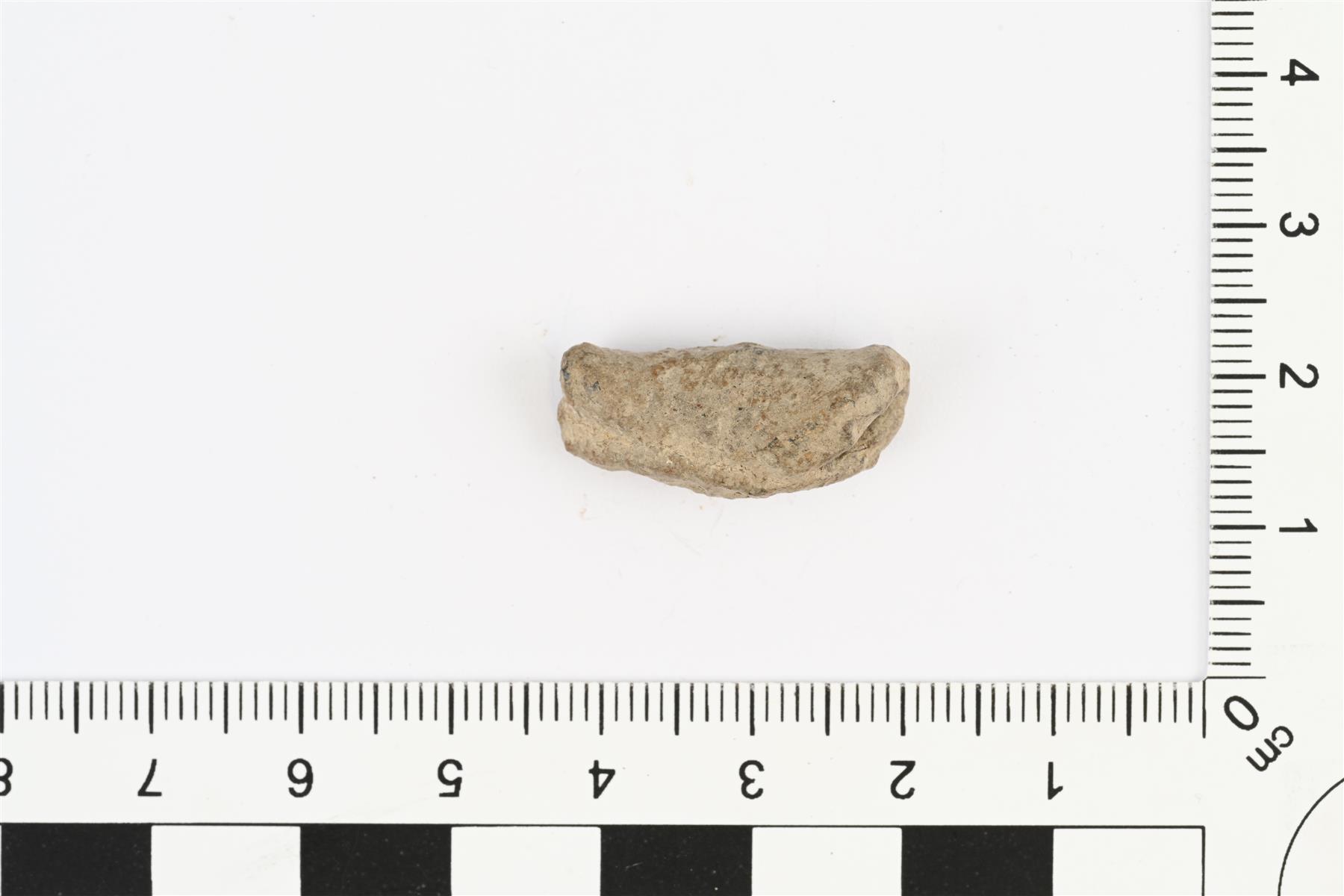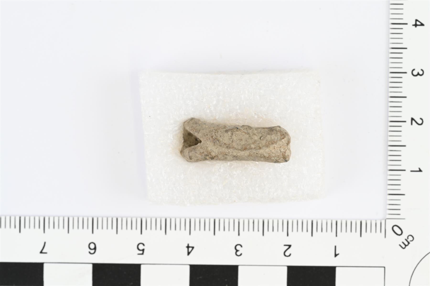 | Mahdollinen kupariraha. Voisi olla myös jotakin muuta metalliseosta, mahdollisesti lyijyseosta. Pyöreä, litteä, melko paksu levy, joka on kierretty rullalle. Rahan halkaisija noin 22 mm. | |