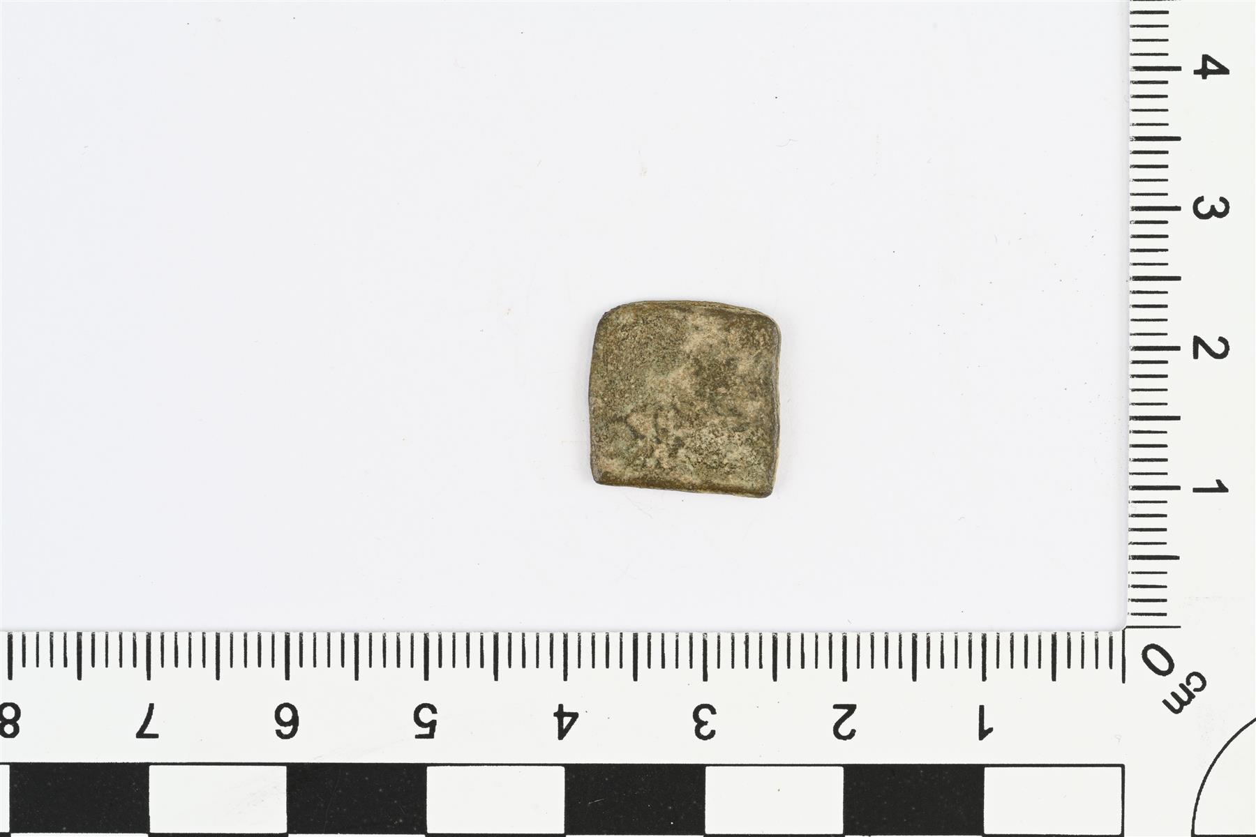 | Mahdollinen kultarahan paino. 1500-luku. Paino vastaa noin puolta englantilaista angelia (half angel). 1,92406g. Tunnistus Frida Ehrnsten, Kansallismuseon rahakammio. | |