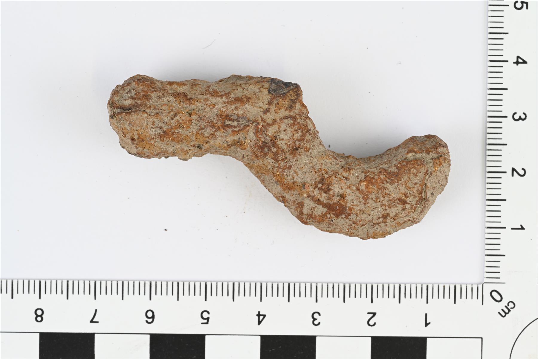 | Rautaesineen katkelma. Toisessa päässä suora varsi, toinen pää koukkumainen. | |