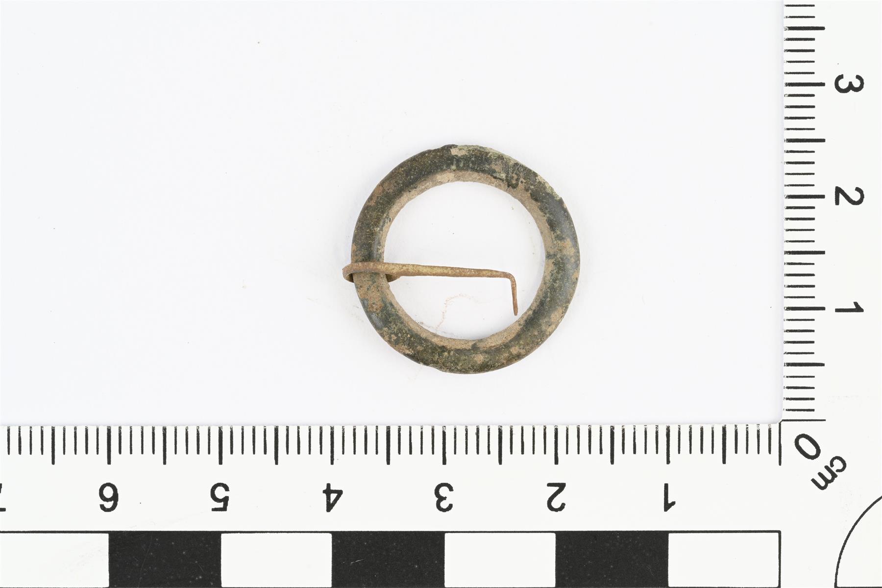 | Pieni pyöreä kehäsolki. Hyvin ohut neula, jonka tyvi kierretty kehän ympärille ja kärki taittunut. Paksuus mitattu neulan tyven kohdalta. Kehän paksuus 2 mm. | |