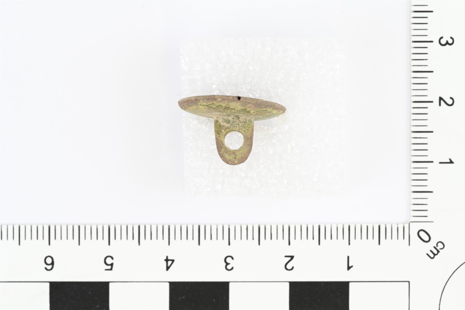 | Nappi, jonka etupuoli hieman kovera ja taustapuoli kovera. Taustapuolella kanta. Etupuolella reliefikoristeluna kukka. | |