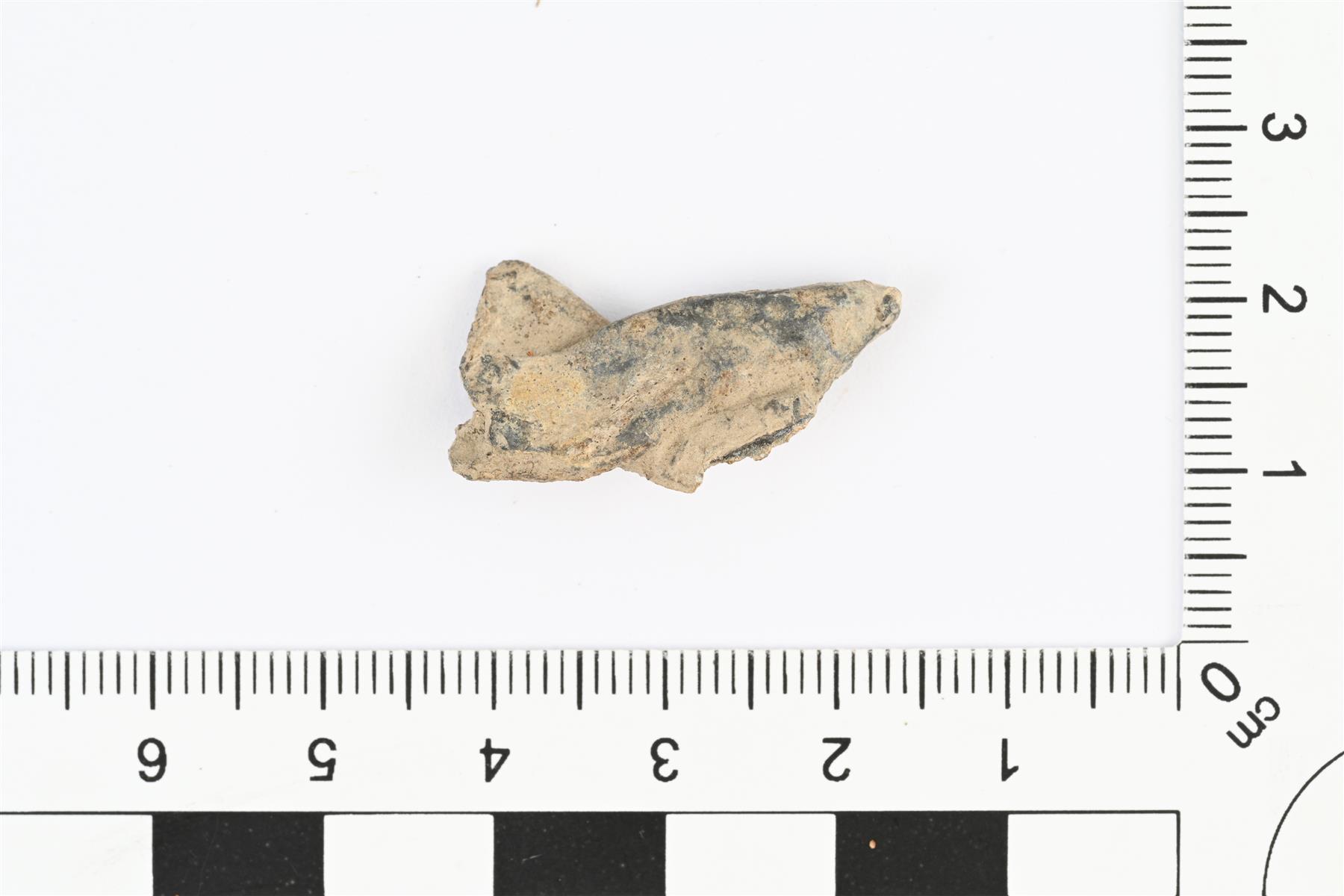 | Osittain sulanutta kaksinkertaista metallilevyä. Harmaata metalliseosta, mahdollisesti lyijy- tai tinaseosta. | |