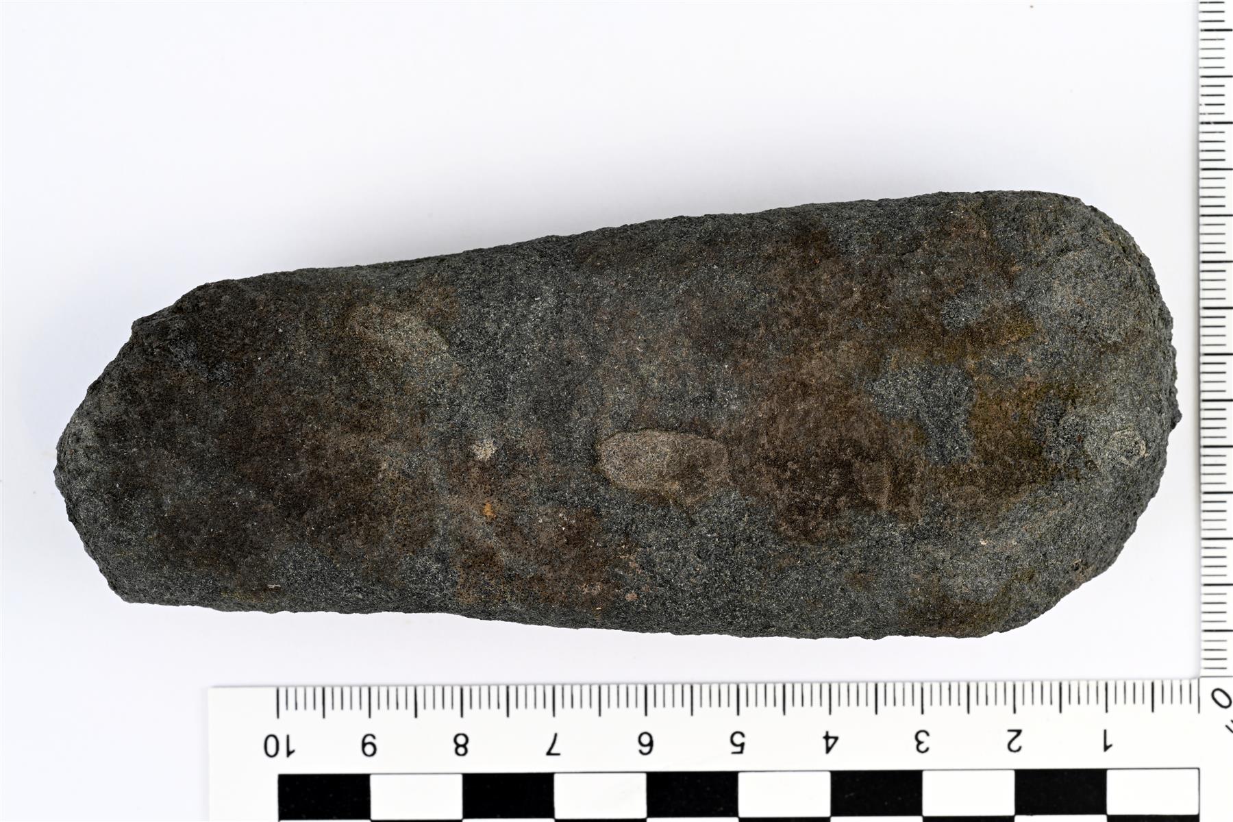 | Pahoin rapautunut kourutaltta. Alkuperäinen ulkopinta on lähes kokonaan tuhoutunut. Kanta ja kärki ovat molemmat murtuneet. Kouruosa on selvästi erotettavissa. | |