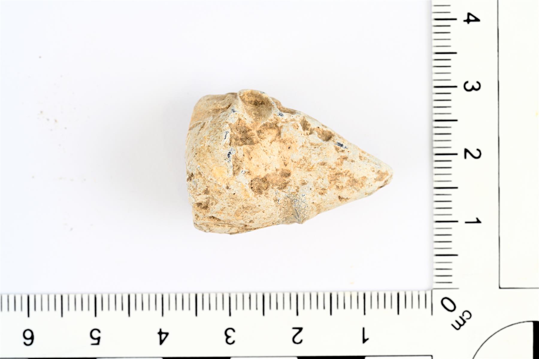 | Kartiomainen pala lyijyä. Todennäköisesti raaka-ainetta metallivalua varten. | |
