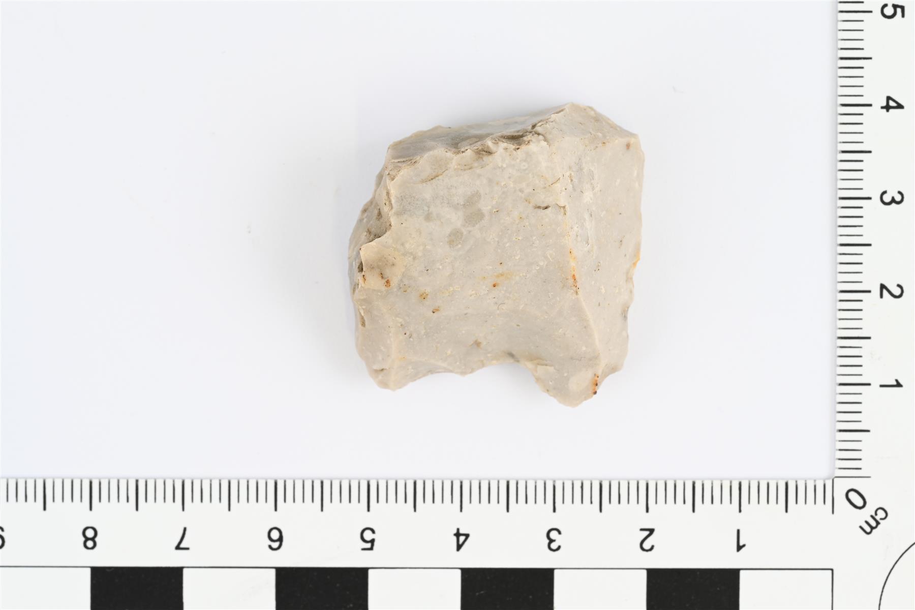 | Särmikäs, karkeasti nelikulmainen piikiven pala, josta lyöty iskoksia. | |