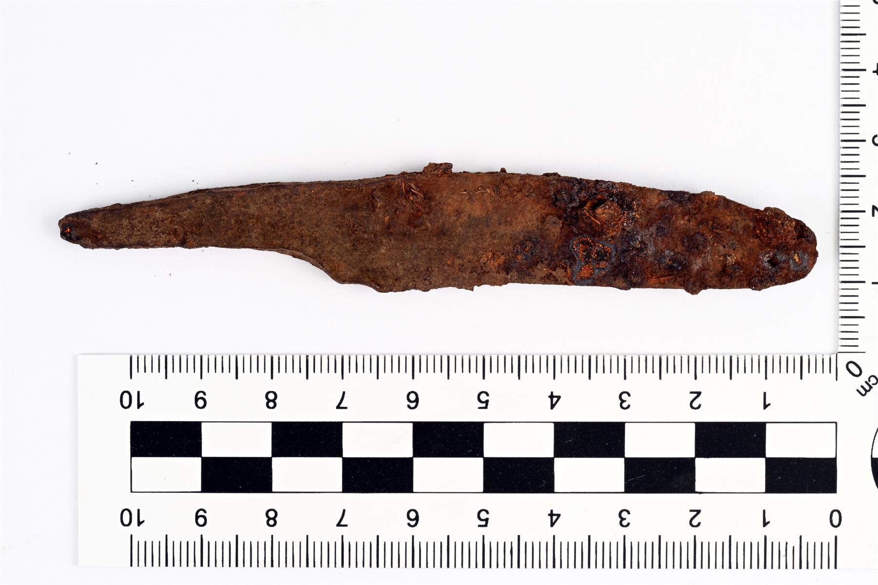 | Kaarevahamarainen ja piiloruotoinen veitsi. Terän poikkileikkaus on kolmiomainen. Ruoto jatkuu suoraan hamarasta ja teränsuun puolella on olka. | |