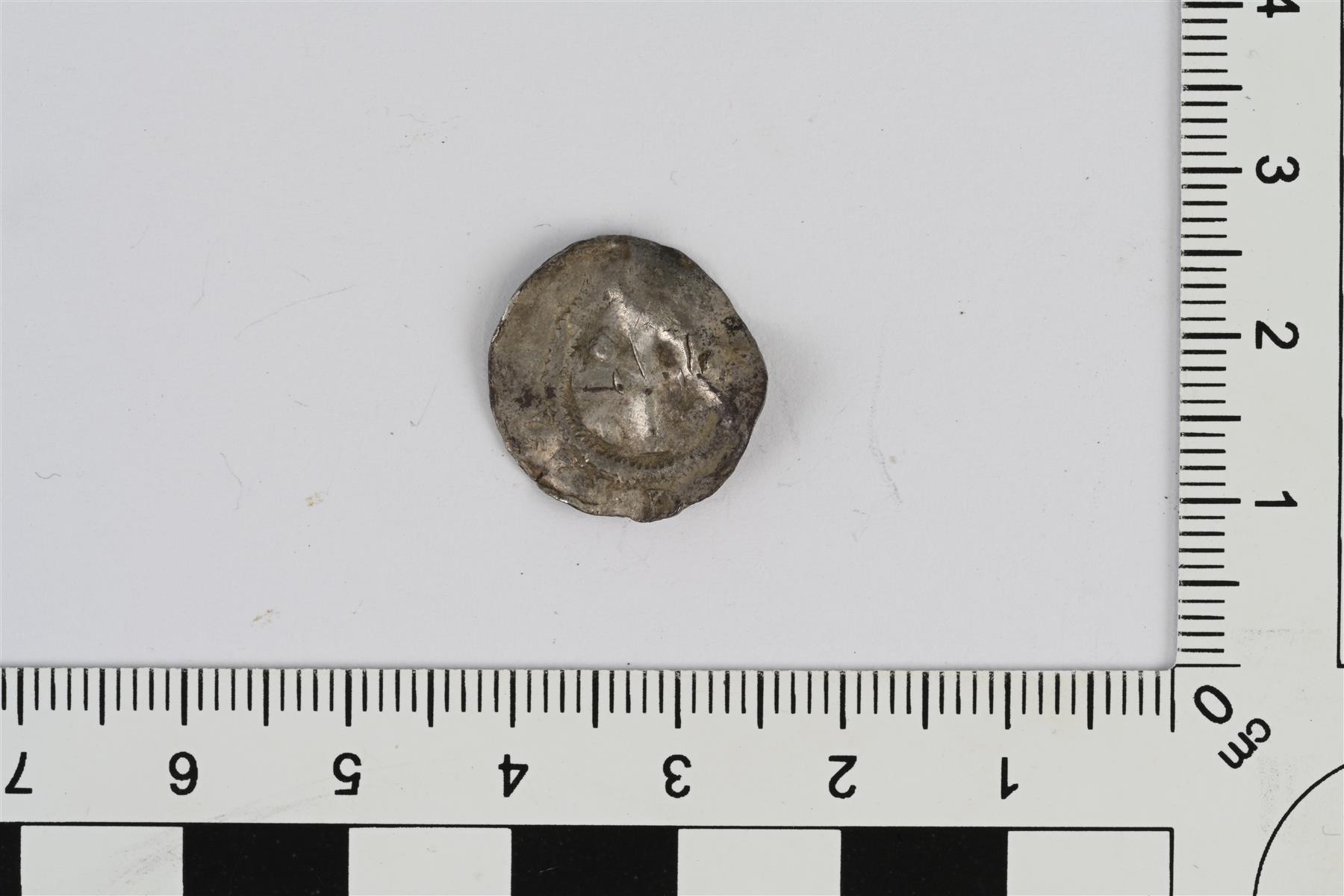 | Otto I/II/III, penninki, Mainz 962–983, 996–1002 (Kluge 31). Tarkka paino 1,27221 g. Tunnistus Frida Ehrnsten, Kansallismuseon rahakammio. | |
