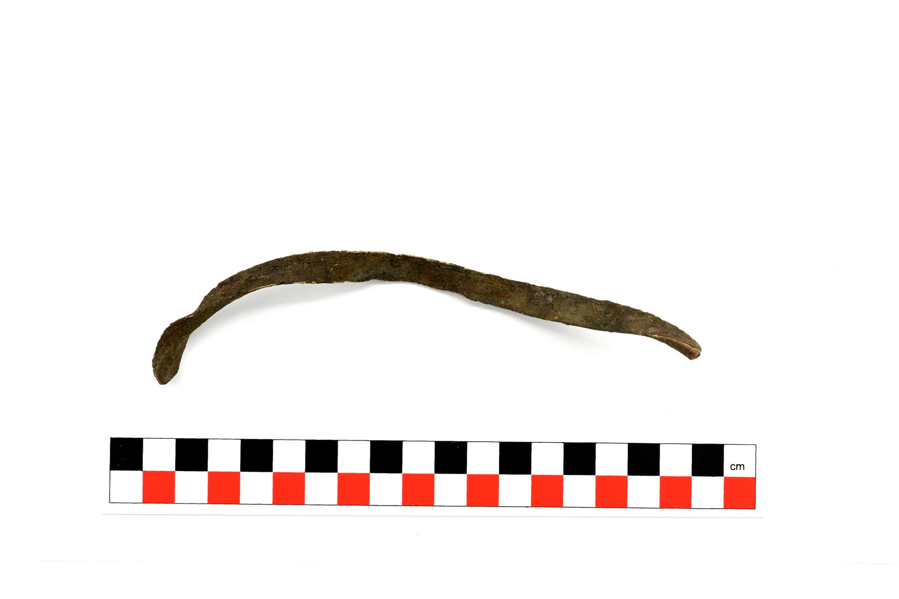 Spiraalirannerenkaan katkelma. Väännetty avonaiseksi. Poikkileikkaukseltaan kolmiomainen varras. Vrt. esim. Kivikoski Abb. 744. | |