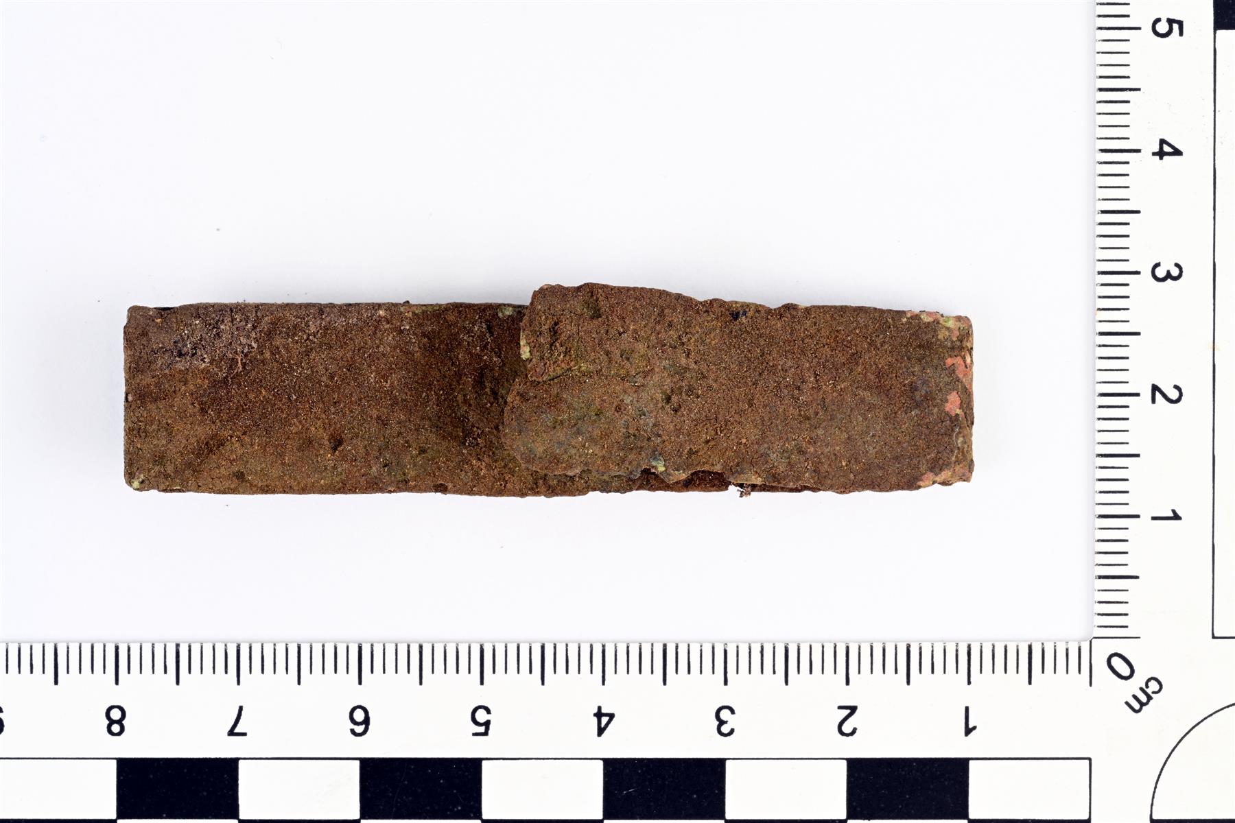 Kapea kupariseospellin katkelma. Molemmat päät on taitettu kaksinkerroin. | |